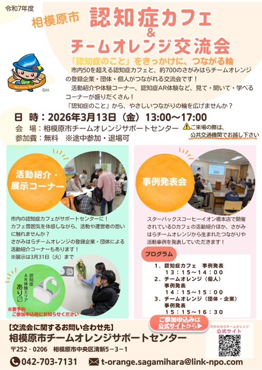 2026年3月13日(金)、相模原市チームオレンジサポートセンターにて、認知症カフェ&チームオレンジ交流会を開催します。